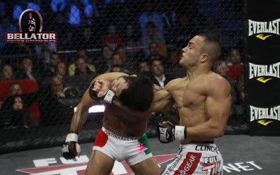 By FCF Staff Eddie Alvarez added another impressive victory to his growing resume last night in Philadelphia, as the Bellator lightweight champion punished the always game Roger Huerta through two rounds, before the UFC vet was unable to continue into the third. (Pictured above: Alvarez (r) hitting Huerta)