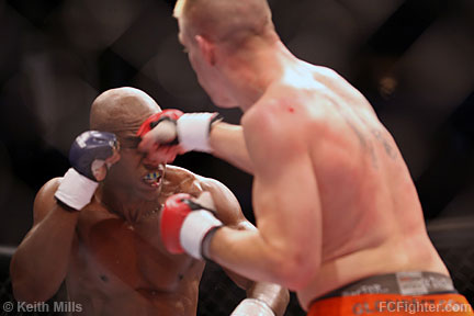 On this episode of Full Contact Fighter Radio, host Jeff Meszaros and co-host James Kellaris debate the coolness of having more than one nickname, and the criteria involved in picking which one is cooler. Then, it’s time to talk about the card for World Extreme Cagefighting where Urijah “The California Kid” Faber drops to the 135-pound division to face the Japanese fighter Takeya Mizugaki. Also, his Alpha-male team-mates step into the cage as Joseph Benevidez faces Wagney Fabiano and Chad Mendes fights Javier Vasquez. Will the wild-striking and crazy guillotines of the pocket-size wrestlers be too much for the jiu-jitsu fighters to handle? Tune in and hear what we think! Then it’s time to move over the talk about the under-card for UFC 122: Marquardt vs. Okami. We’re leaving the main card for next week, kind of, but we’ll run down the matches for the preliminary card this week, where fighters like Vladimir “the Janitor” Matyushenko, Kyle Noke and Kris “The Savage” McKray make Octagon appearances against opponents who may, or may not, be on their level. Then Duane Ludwig joins the show to talk about his upcoming fight in Germany against Nick Osipczak and share his thoughts on the whole event. If you don’t think that’s an earful of satisfaction, you’re living in a world of unrealistic expectations! (Pictured above: Ludwig punching Yves Edwards)