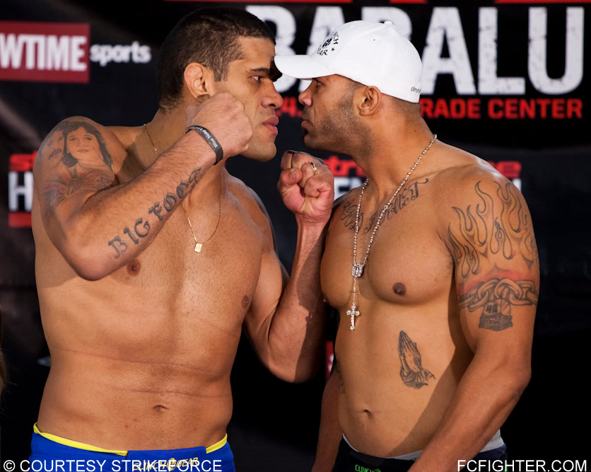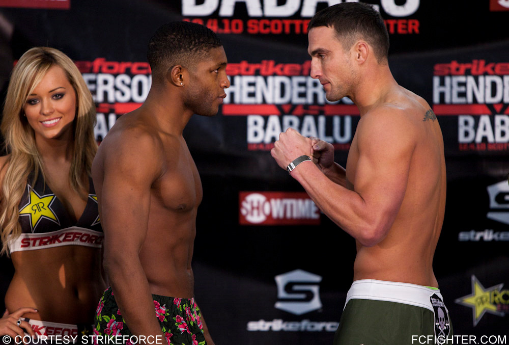 Here are the official weigh-in results for Strikeforce’s “Henderson vs. Babalu” card tonight in St. Louis, which will see Dan Henderson face former light-heavyweight champion Renato “Babalu” Sobral in the main event. (Pictured: Henderson (left) and Sobral face off)