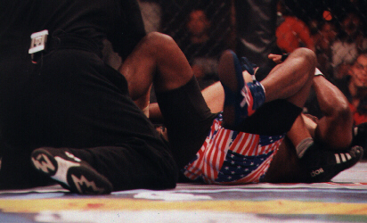 | Kevin Jackson vs Jerry Bohlander. | Jackson telling Big John... "NO! NO! I didn't tap!". | Did he tap? Jackson vs Bohlander. | Choke... |