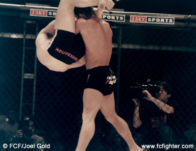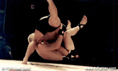 Hughes setting up the second slam as Hallman works the arm ![]() |