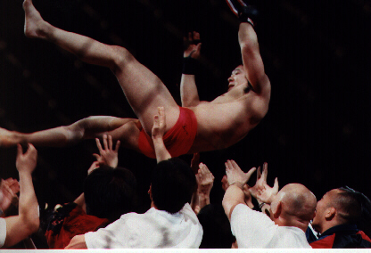 | Randy Couture, ready for battle. | Maurice Smith low kicking Randy Couture. | More of Smith's famous leg kicks. | Randy on top. | Randy Couture wins Full Contact Fighter's 1997 Fighter of the Year award |