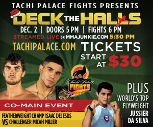 Tachi Palace Fights has announced the line-up for the promotion’s upcoming “Deck the Halls” event, which will take place December 2nd, at the Tachi Palace Hotel and Casino in Leemore, California.