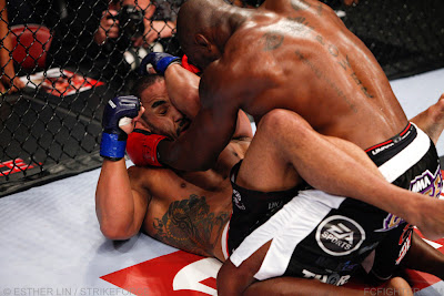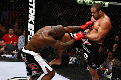 By Kelsey Mowatt Rafael “”Feijao” Cavalcante became the first man to hand one of the sport’s fastest rising stars a loss tonight, as the Brazilian fighter stopped Muhammed “King Mo” Lawal at Houston’s Toyota Center, to take home the Strikeforce light-heavyweight crown. In the bout’s opening two rounds Lawal largely seemed content to engage Cavalcante on his feet, and although the challenger was able to land some effective counter strikes, the renowned wrestler Lawal scored additional points with a couple of takedowns. (pictured above: Feijao landing a knee to Lawal)