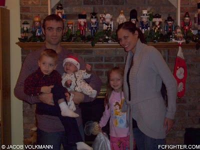 Although it may not have been the most memorable performance of his career, Jacob Volkmann continued his march up the lightweight rankings at last week’s UFC 125 card, by working his way to a split decision win over accomplished veteran Antonio McKee. Despite the fact that Volkmann became the first man to defeat McKee in seven years, extended his winning streak to three, and started the 2011 campaign on a winning note, the 30 year-old-fighter wasn’t overly impressed with his latest victory. (Pictured: The Volkmann family enjoying Christmas 2010)