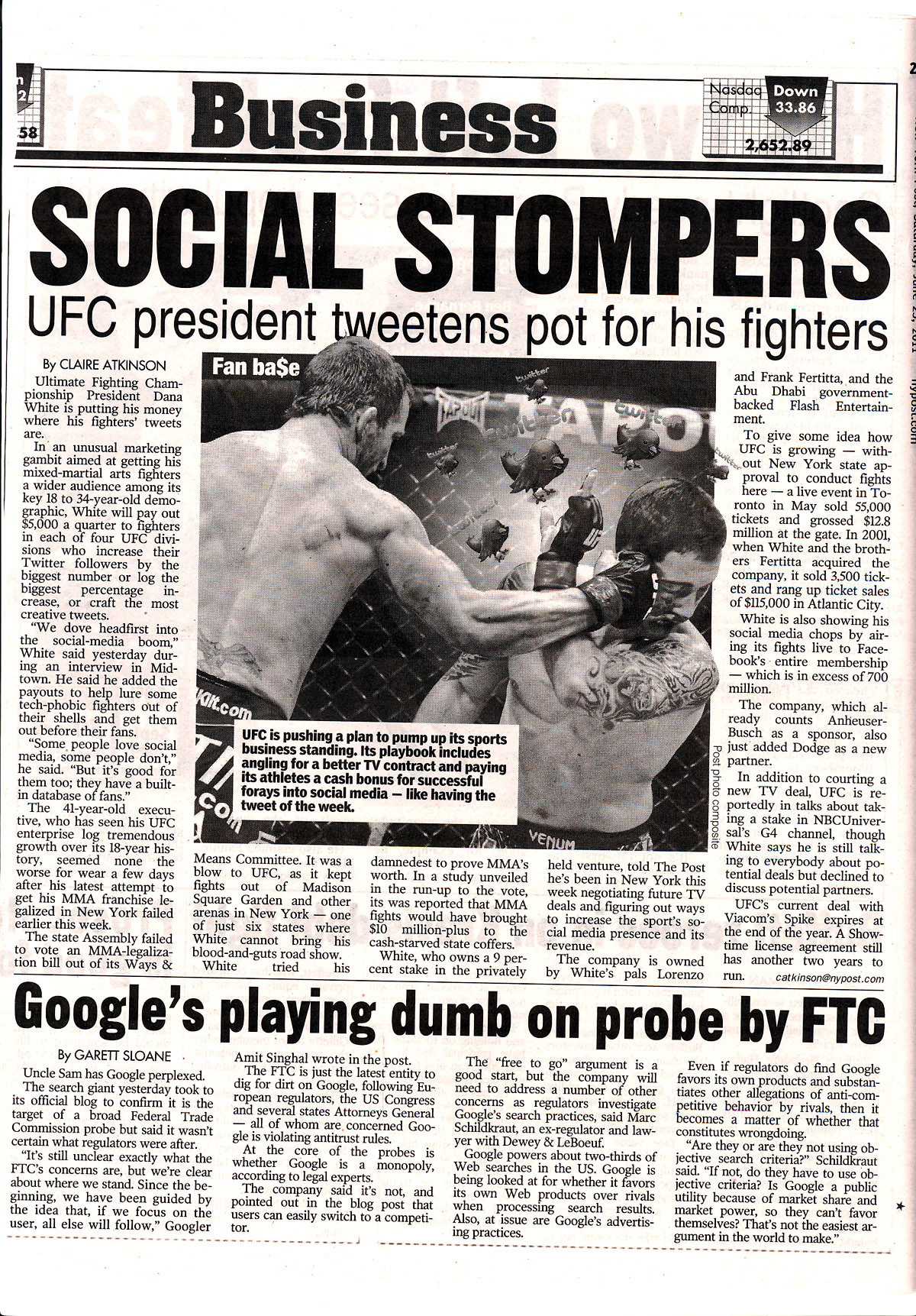The business section in yesterday’s edition of the NY Post featured coverage of the UFC’s ambitious new social media initiatives that Mixed Martial Arts’ leading promotion has undertaken in an effort to further expand its fan base.