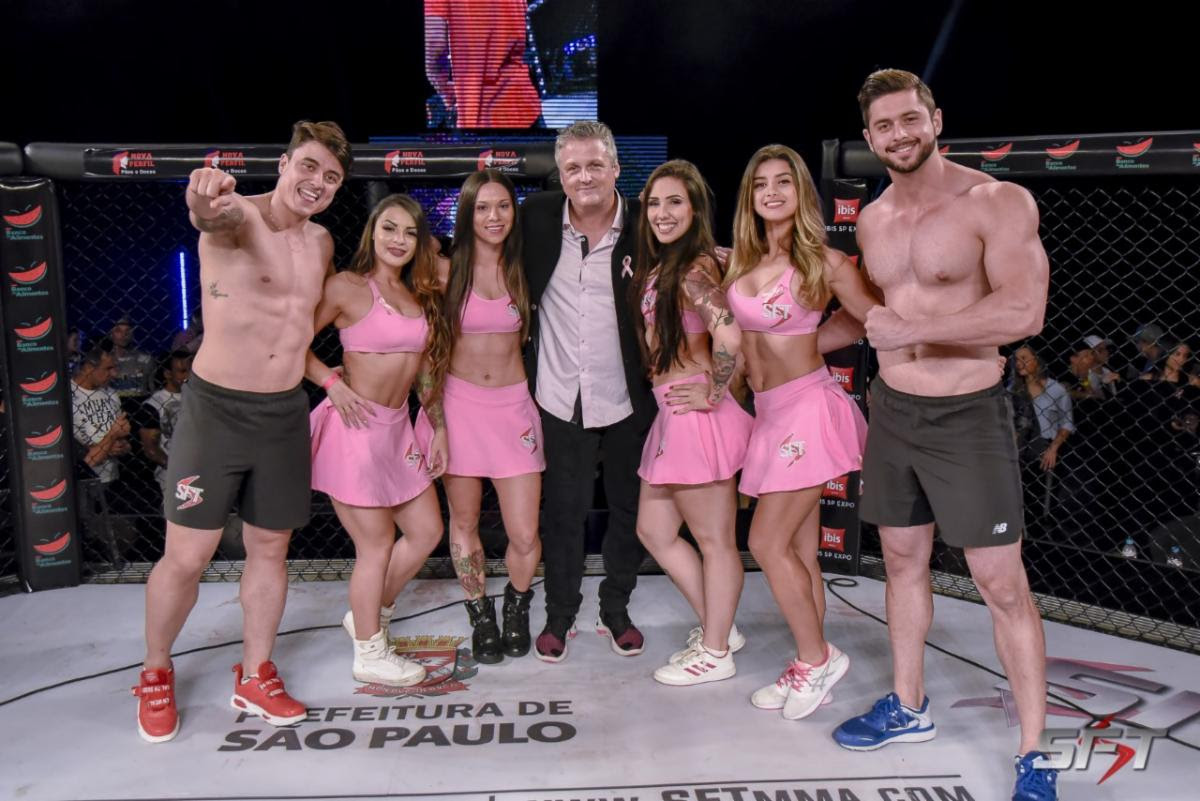 “Two years ago,” SFT president David Hudson said, “we dedicated our card to Breast Cancer Awareness. It was an all-female card: fighters, referees, and cut-women. Even two of our ring-card girls brought their boyfriends to be ring-card boys. It was the first time in Brazil’s long MMA history that featured an all-female event. The first year I had joined SFT less than three months earlier and we weren’t able to get enough women fighters, so the main card was all-females.