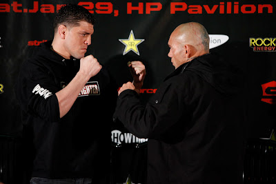Several of the competitors for Strikeforce’s “Diaz vs. Cyborg” event Saturday night were on hand at a pre-fight presser in San Jose, yesterday, to share their thoughts about the upcoming card.. The event, which will be broadcast on Showtime, will feature not one but two title fights, as welterweight champ Nick Diaz will take on Evangelista “Cyborg” Santos and current middleweight king Ronaldo “Jacare” Souza will face Robbie Lawler.